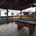 Terraço coberto com churrasqueira e banheiro
